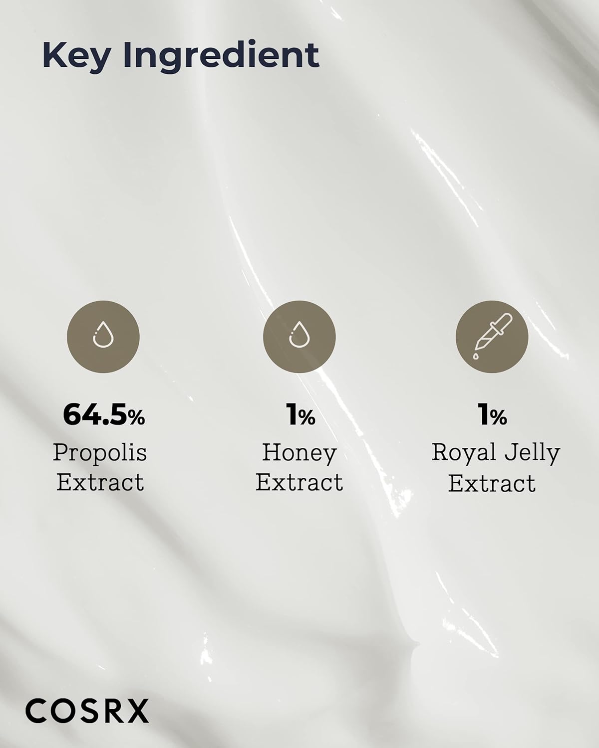 Extrato de própolis, butilenoglicol, glicerina, triglicerídeo caprílico / cáprico, óleo de semente de Helianthus Annuus (girassol), 1,2-hexanodiol, extrato de mel, extrato de geléia real, copolímero de hidroxietil acrilato / acriloildimetil taurato de sódio, extrato de semente de Cassia Obtusifolia, olivato de cetearila, Cera de abelha, álcool cetearílico, olivato de sorbitano, alantoína, arginina, carbômero, goma xantana