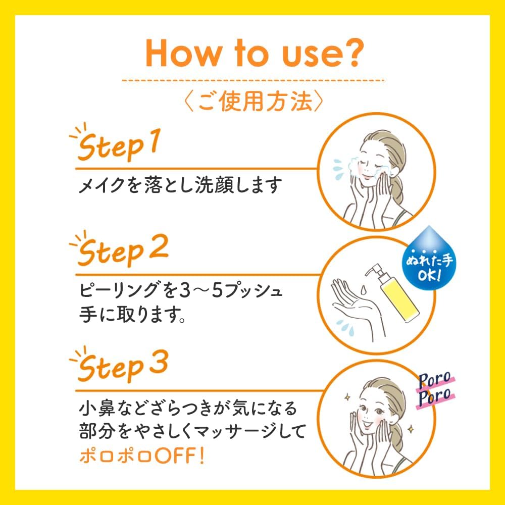Use com a pele limpa. Também pode ser usado para peles com umidade remanescente. Pegue uma quantidade adequada (3 a 5 empurrões) na mão, evite a área ao redor dos olhos e lábios e massageie suavemente a área de preocupação. Caso os polos e manchas sejam removidos, enxágue abundantemente, para não deixar enxague. Recomendamos usá-lo antes de lavar o rosto pela manhã. Recomenda-se usar 1 a 2 vezes por semana. Tenha cuidado para esfregar com muita força.