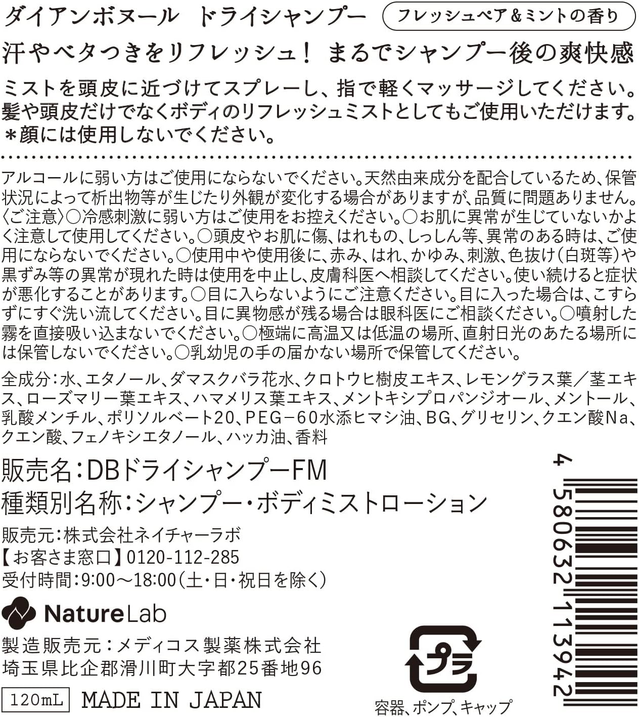 Diane Bonheur Dry Shampoo (Fresh Pair & Mint Scent)