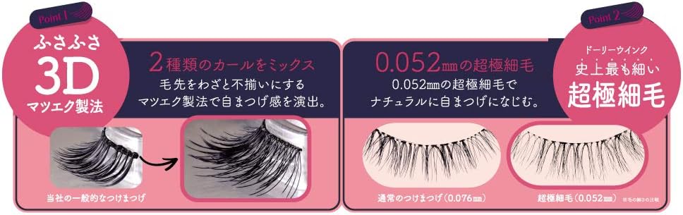 Cílios postiços produzidos por Tsubasa Mashuya. Esta série natural usa método de fabricação 3D e cabelo ultrafino que cria uma sensação tridimensional natural. Os cílios grossos estão dispostos aleatoriamente dentro dos cílios naturais, o que proporciona força total aos olhos e ao mesmo tempo a aparência de um pinneck. Base transparente