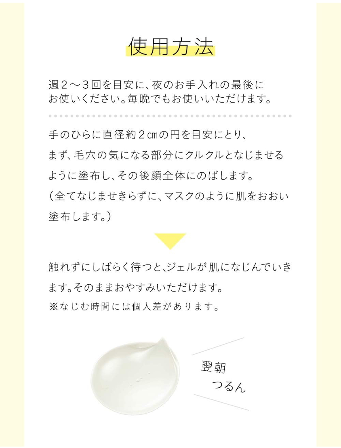 O gel úmido oferece uma máscara contínua durante a noite, mantendo a pele úmida e sem sensação pegajosa até o próximo dia.