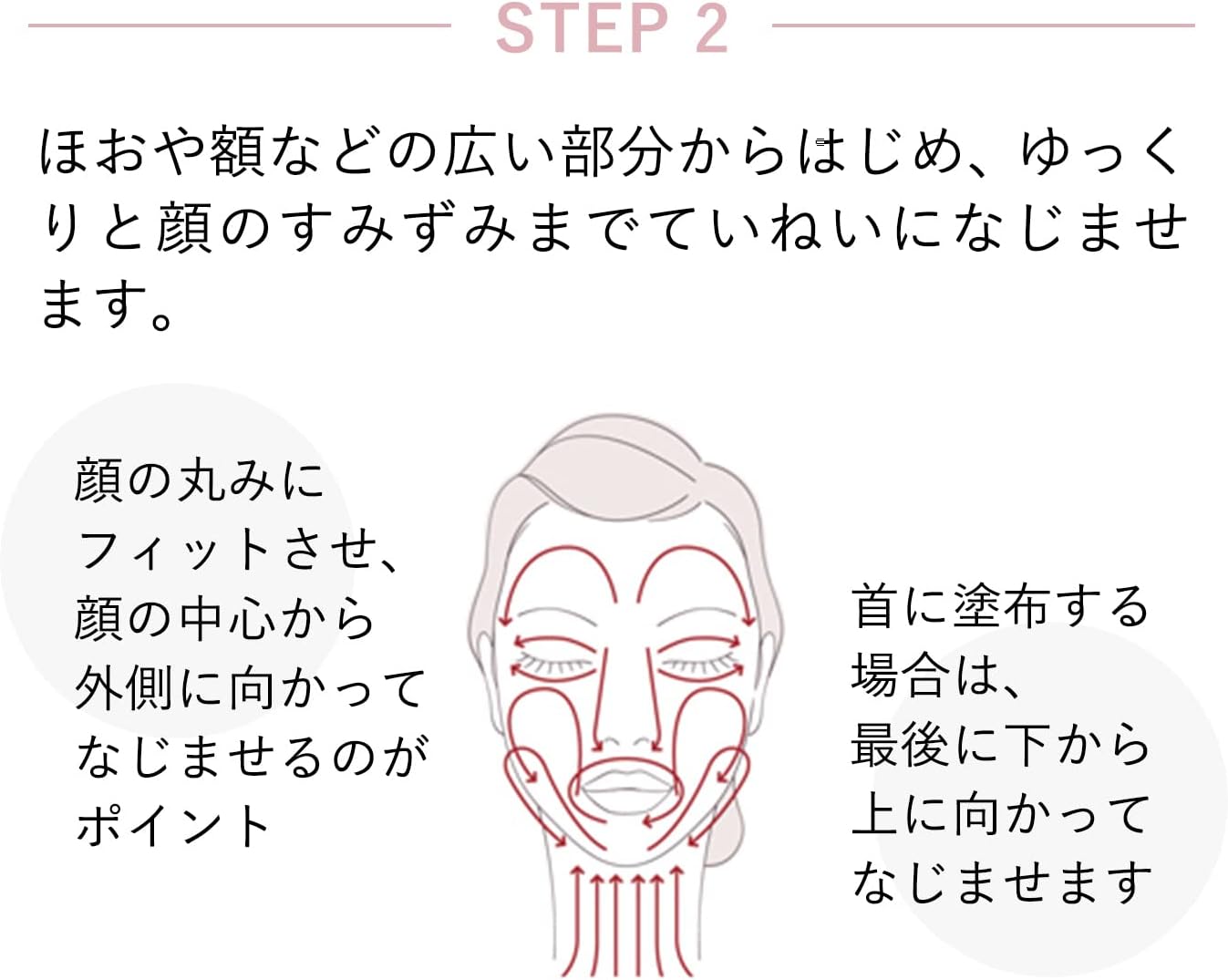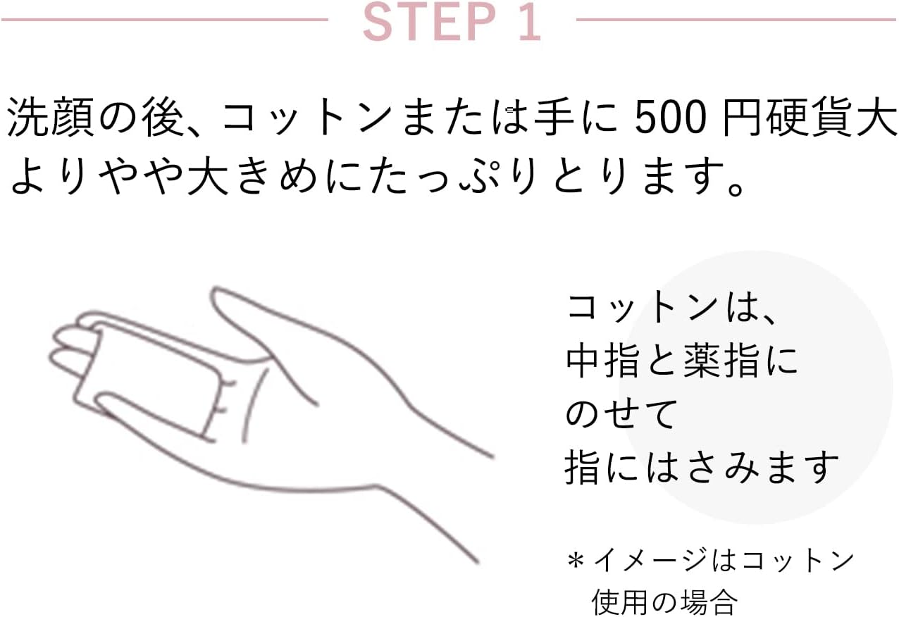 Após a loção, preencha o algodão ou a mão um pouco maior que a moeda grande de 10 ienes e misture bem. Recomendamos o uso de algodão para misturar uniformemente em sua pele.