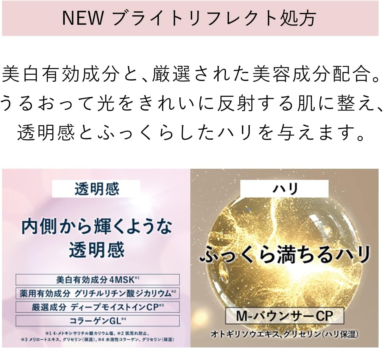 Leite clareador medicinal para a pele cheia de transparência e firmeza. Clareamento *& Cuidados de Envelhecimento** Deixa a pele cheia de transparência e crocância que dura. Emulsão branqueadora medicamentosa. A chave para a transparência é que sua pele reflita a luz lindamente. A fórmula reflexiva brilhante com ingredientes ativos clareadores cria uma sensação de transparência, pele hidratada e refletora de luz. Além disso, os ingredientes de beleza são formulados para dar à sua pele uma elasticidade e firmeza. Elimina pequenas rugas do ressecamento. (Eficácia testada) Previne a produção de melanina, evita manchas, sardas. *Cuidado hidratante para idades.