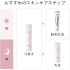 Depois de lavar o rosto, preencha-o com algodão ou com a mão um pouco maior que a moeda grande de 500 ienes e misture suavemente. Recomendamos o uso de algodão para misturar uniformemente em sua pele.