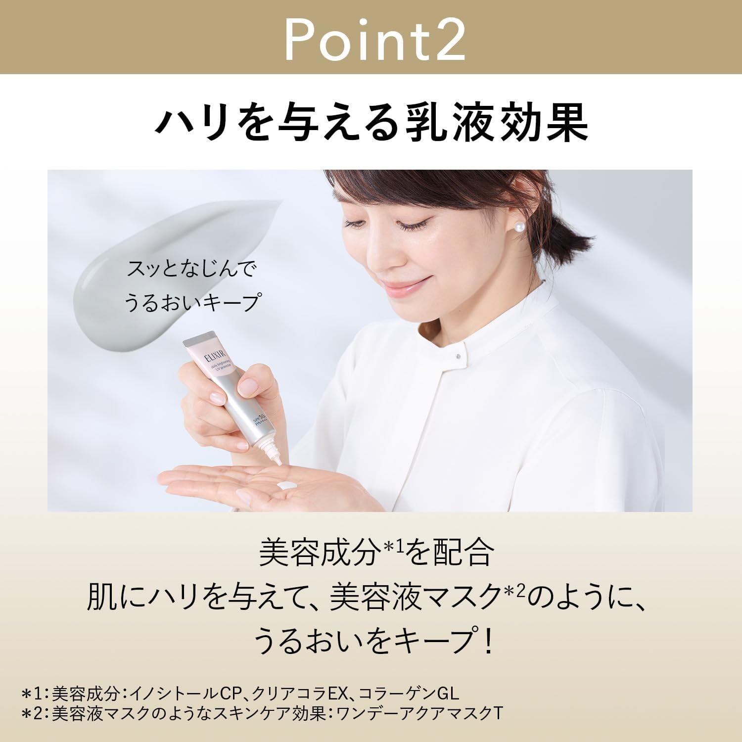 Cuidados de envelhecimento*Não estraga a sua impressão matinal. “Tsuyadama” até a noite. Loção matinal . Para manter um acabamento brilhante de manhã até à noite. Três efeitos em um: emulsão , base de maquiagem e protetor. Torna menos visíveis as rugas finas causadas pela secura (testado para avaliar a eficácia). * Cuidados com a umidade de acordo com a idade