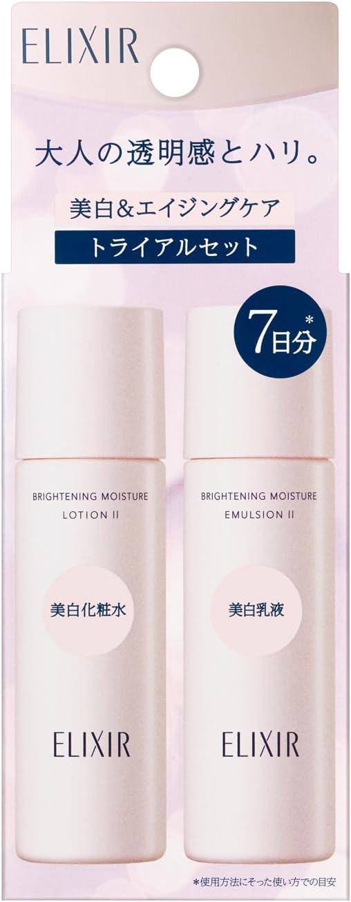 O conjunto inclui a Elixir Brightening Lotion WT 2, uma loção quase medicamentosa com 30 ml, e a Elixir Brightening Emulsion WT 2, um leite hidratante também com 30 ml. Experimente este conjunto de teste e descubra o segredo para uma pele mais clara, firme e rejuvenescida em apenas uma semana.