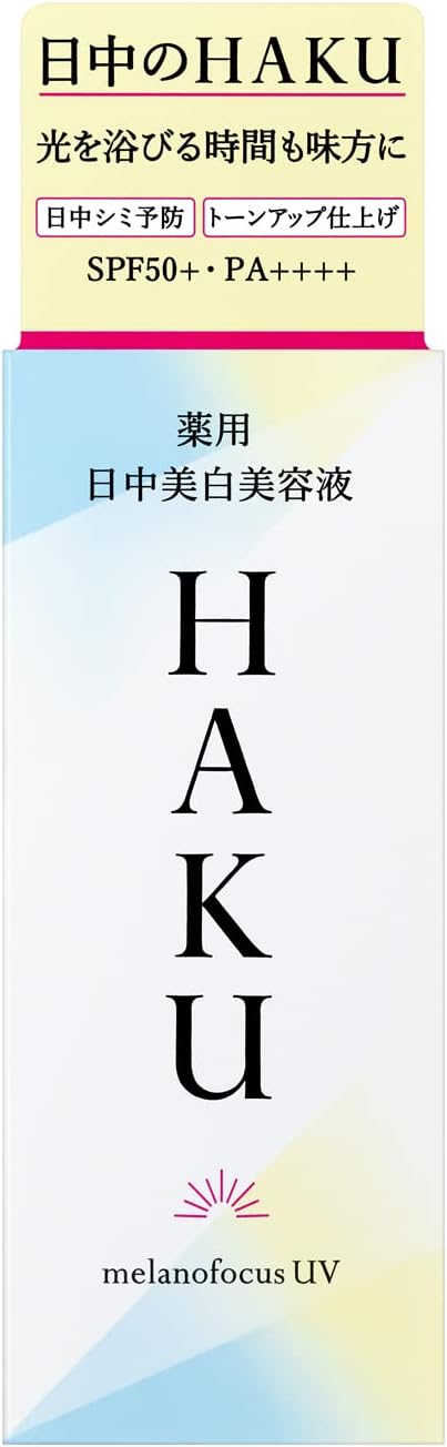 que torna seu tempo de exposição à luz seu amigo . HAKU durante o dia. Focando no ambiente da pele onde ocorrem manchas durante o dia. Equipado com tecnologia de ponta em pesquisa de prevenção de manchas. Um cuidado clareador que pode ser feito durante o dia, aproveitando o tempo de exposição ao sol . Suprime a produção de melanina e previne manchas senis e sardas. Para uma pele brilhante e transparente. Também pode ser usado como base de maquiagem . Acabamento brilhante e transparente com efeito tonificante.