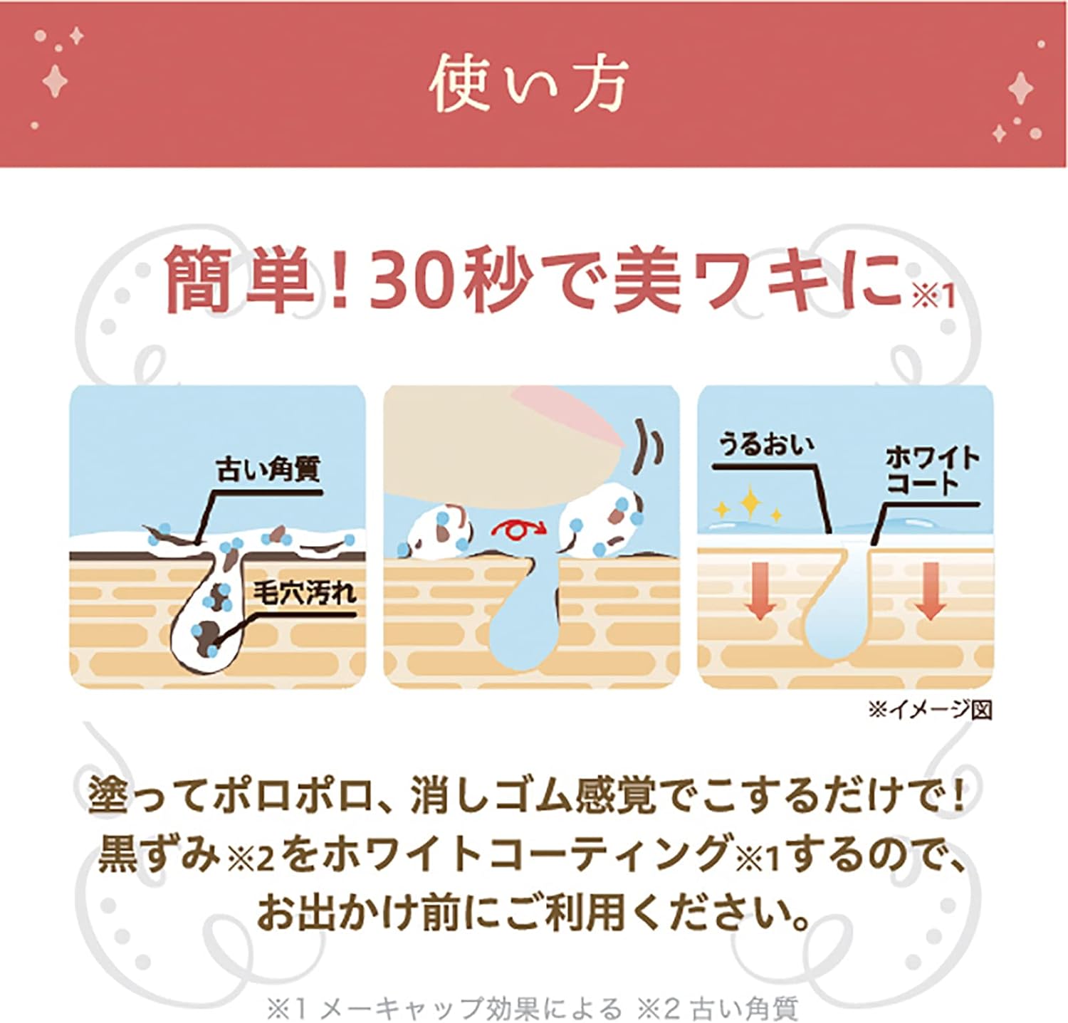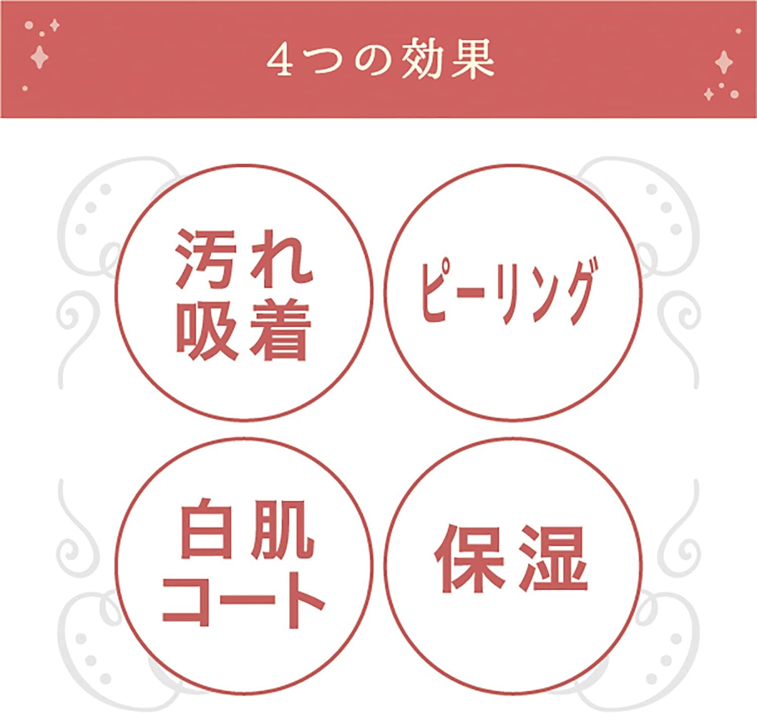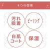 Shitowakihime Care com 5 efeitos. 1. Adsorção inteligente de sujeira acumulada com ingrediente de argila; 2. Descascar a esfoliação antiga com ácido de frutas. 3. Revestimento branco para pele branca. 4. Ácido hialurônico e extrato vegetal. Hidrata e hidrata a pele. 5. À prova d’água para uso o dia todo.