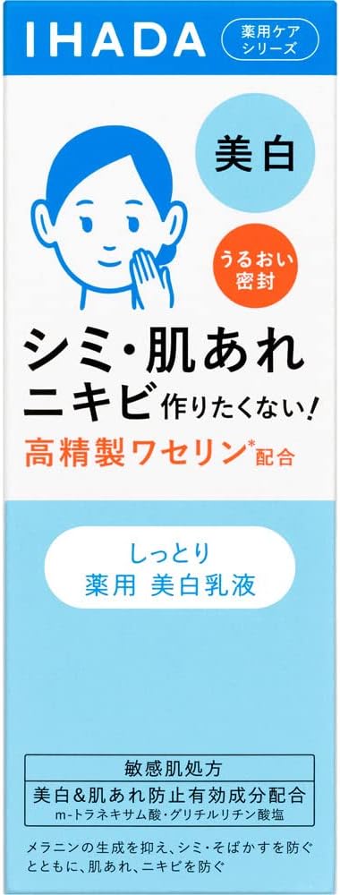 a clareza da pele : manchas e sardas, pele áspera e ressecada e acne . Contém o ingrediente ativo clareador “ácido m-tranexâmico*1”. Suprime a produção de melanina e previne manchas e sardas da idade. Além disso, o princípio ativo previne pele áspera e acne , que tendem a ficar vermelhas. Seu efeito selador de umidade protege a pele de estímulos externos, como o ressecamento, e a mantém hidratada . Ele fornece umidade às camadas profundas do estrato córneo e a satisfaz. Fracamente ácido, sem fragrância , sem cor , sem álcool (etanol), sem parabenos (conservantes), matérias-primas cuidadosamente selecionadas e um design hipoalergênico que mesmo quem tem pele sensível pode usar todos os dias. Parece úmido , mas não pegajoso . Alergia testada e fórmula que não causa acne (nem todas as pessoas serão alérgicas ou não terão acne .) *1 Ácido tranexâmico.