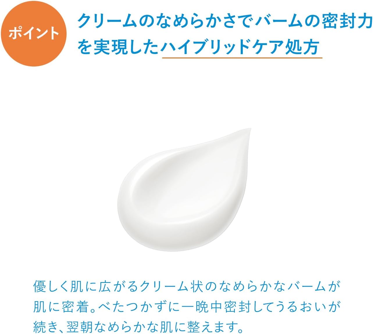 Este é um pacote de cuidados intensivos que previne a secura e irritação da pele. Um bálsamo cremoso que se espalha suavemente e mantém a pele hidratada a noite toda sem deixar sensação pegajosa, proporcionando uma pele macia e suave pela manhã. Sua fórmula de cuidado híbrido oferece a suavidade de um creme e a vedação de um bálsamo.