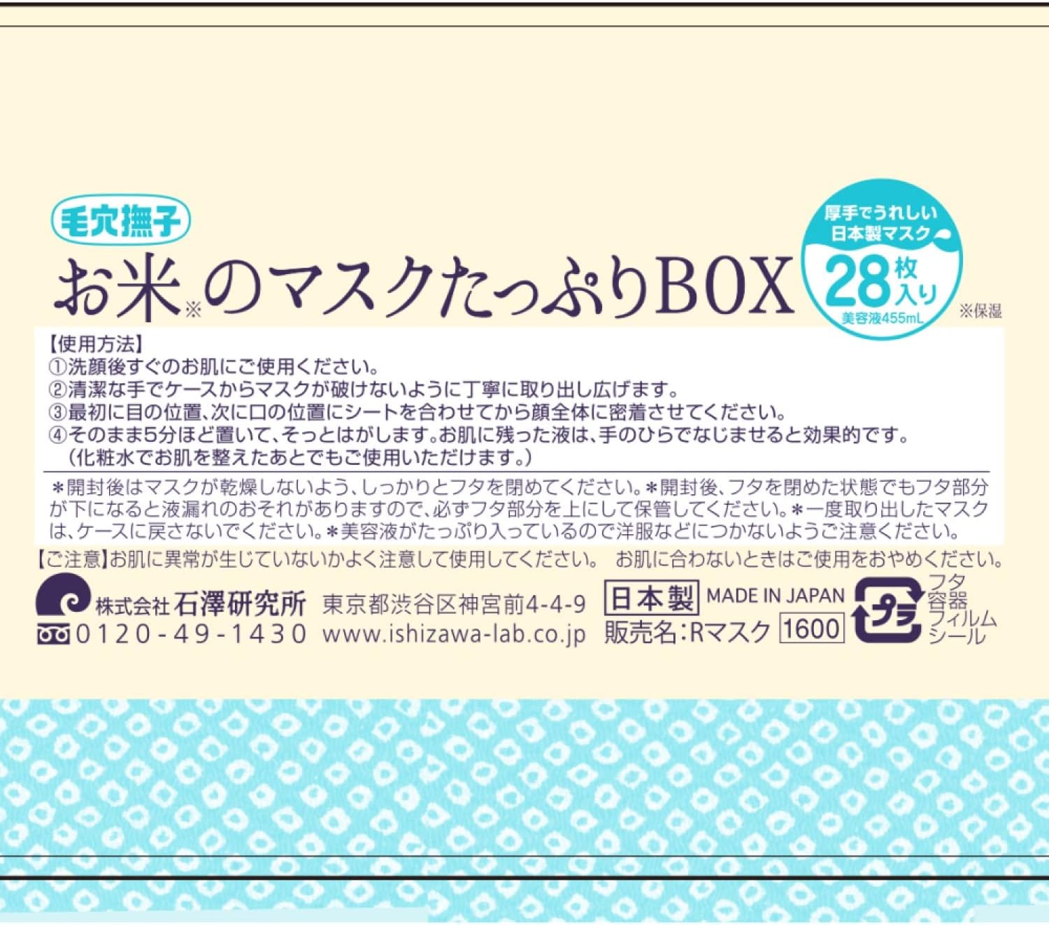 Perfeito para poros secos. Máscara em folha fofa e hidratante. Formulada com ingredientes 100% derivados do arroz doméstico “soro de arroz (ingrediente hidratante)”