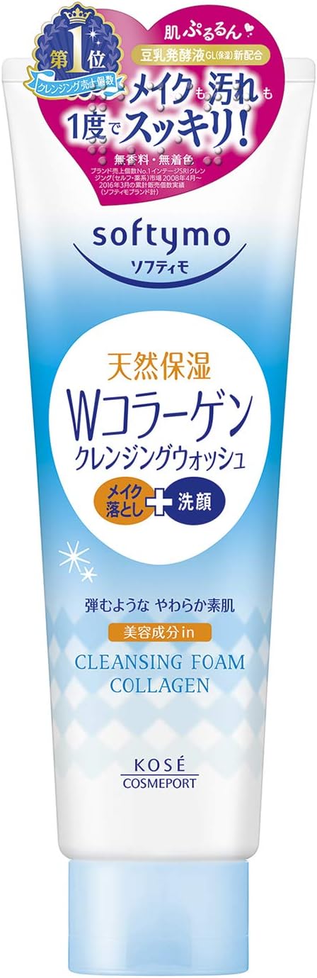 Softymo Super Cleansing Wash Collagen é uma espuma de textura fina remove a maquiagem difícil de cair e a sujeira profunda nos poros.