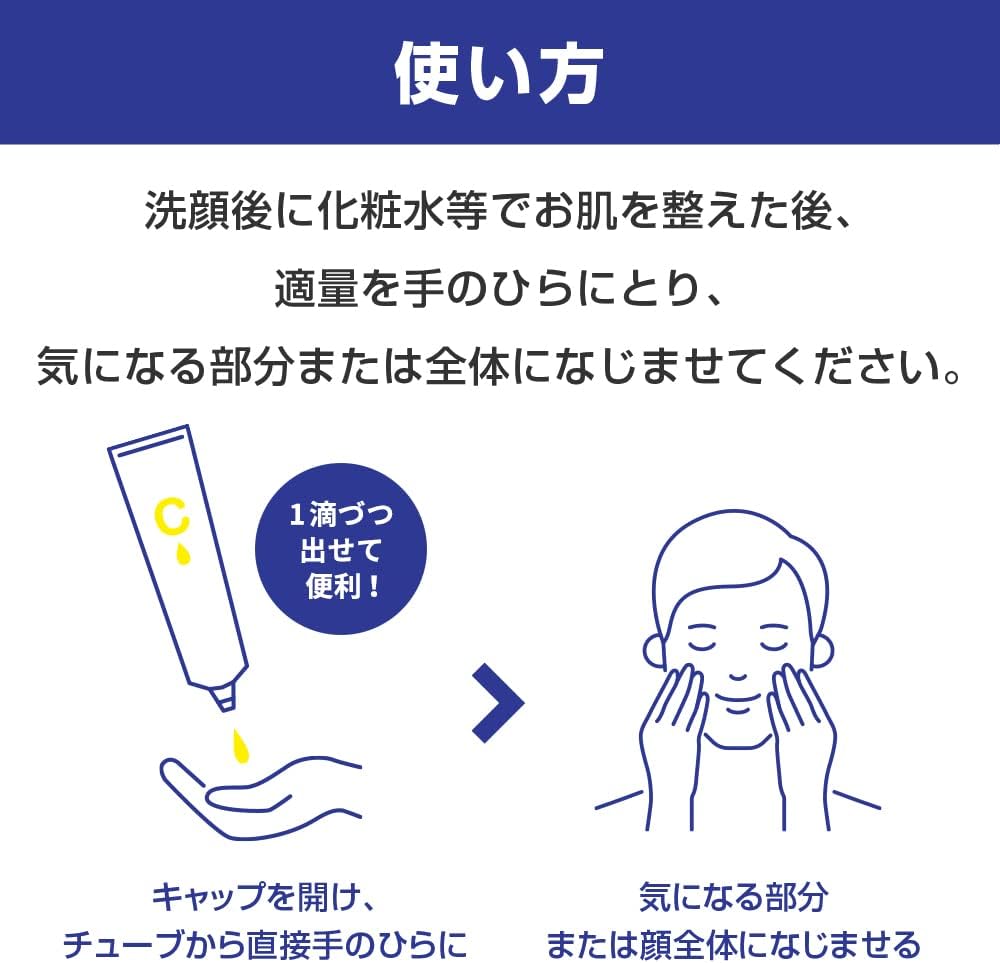 vitaminas W “vitamina C ativa (ingrediente clareador) *1 ” e “vitamina B 6 (ingrediente supressor da secreção de sebo) *2 ” como ingredientes ativos. Penetra profundamente na pele e suprime a produção de melanina, prevenindo manchas senis e sardas. Além disso, contém dois princípios ativos: isopropilmetilfenol (ingrediente bactericida) e ácido salicílico (ingrediente suavizante da queratina) para prevenir a acne.