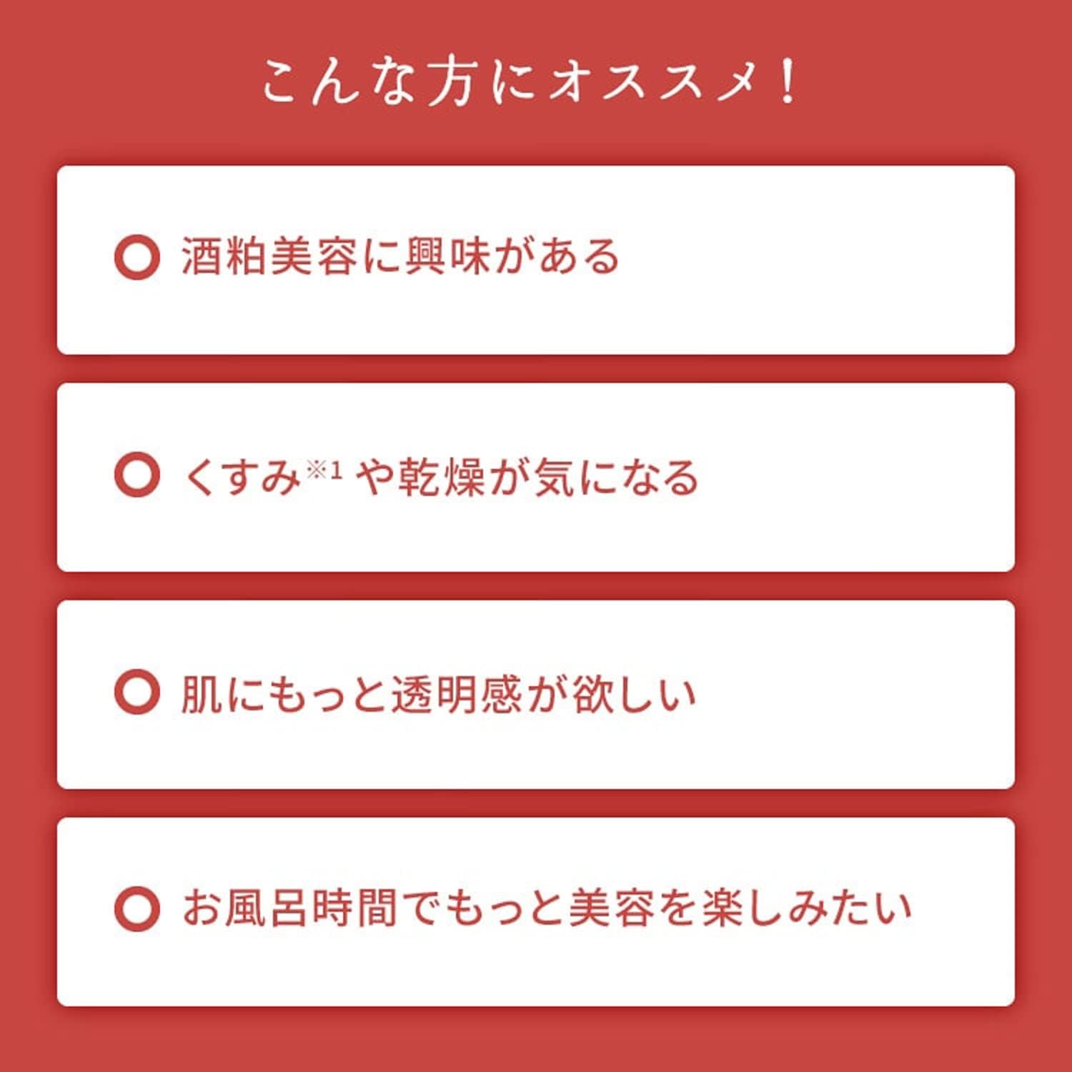 Elimine a opacidade e melhore a hidratação e a luminosidade! Nosso pacote de lavagem contém extrato original de borras de saquê, um ingrediente hidratante que remove as células mortas da pele. As borras de saquê são um subproduto da fabricação do saquê, famoso por seus benefícios de beleza. Diz-se que as mãos dos artesãos de saquê, que manuseiam as borras, são especialmente bonitas.