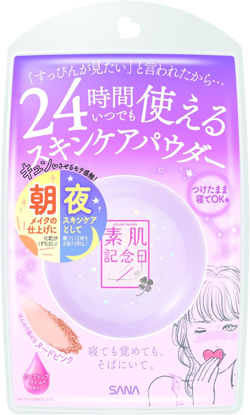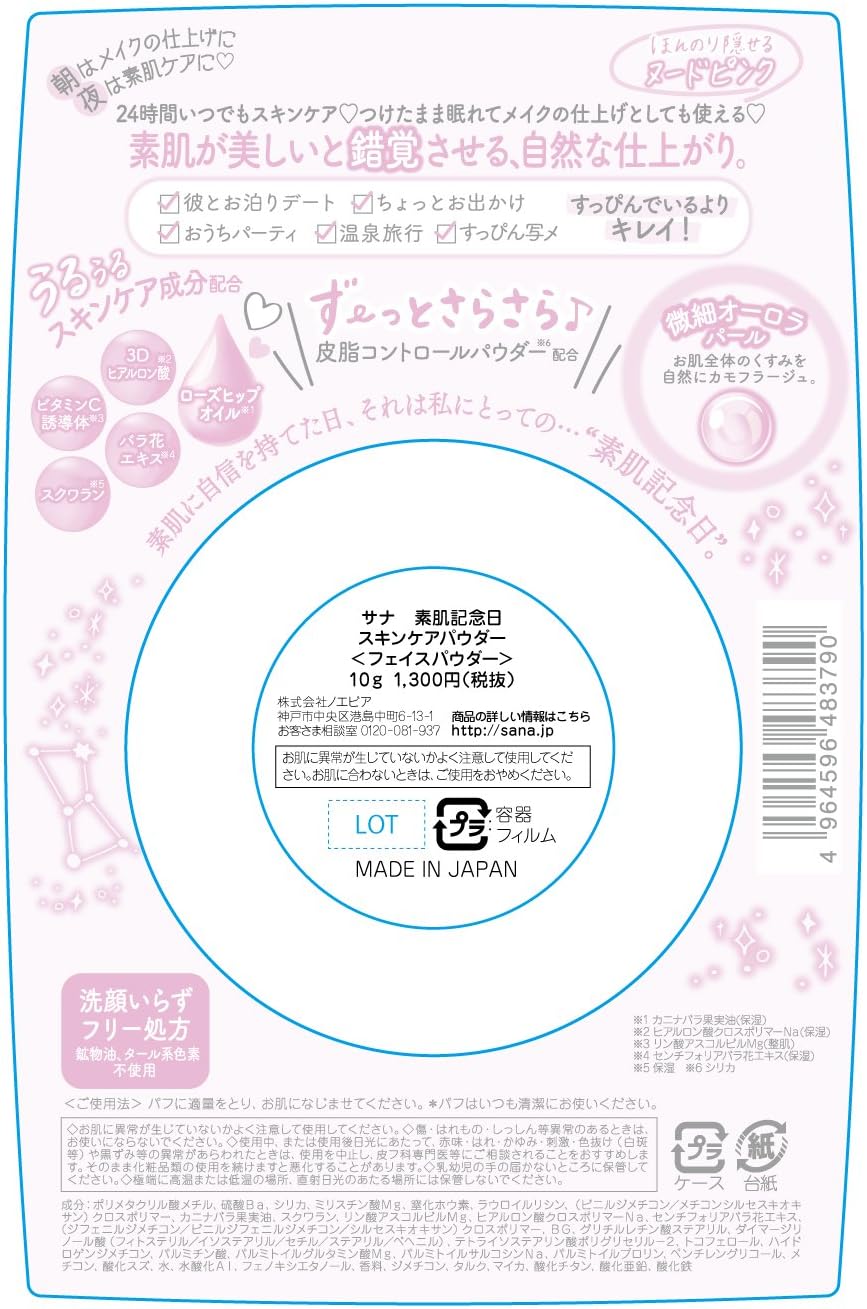 É um pó para cuidados com a pele 24 horas. De manhã, você pode retocar a maquiagem. À noite, você pode cobrir a oleosidade e manter a pele úmida e macia. Sua cor é o rosa Nude que combina com a sua pele e confere uma cobertura leve. Sem óleo mineral. Sem cores à base de alcatrão.