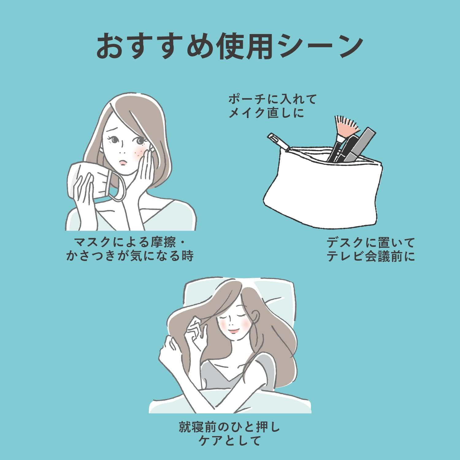 Use-o de manhã e à noite e quando estiver preocupado com ressecamento e descamação durante o dia. Estenda o bastão em 2 a 3 mm, aplique-o diretamente na área em questão e bata com os dedos. Ao retocar a maquiagem, recomendamos retirar previamente o excesso de suor e sebo. *Observe que se você remover muito conteúdo, ele pode quebrar ou não poder retornar.