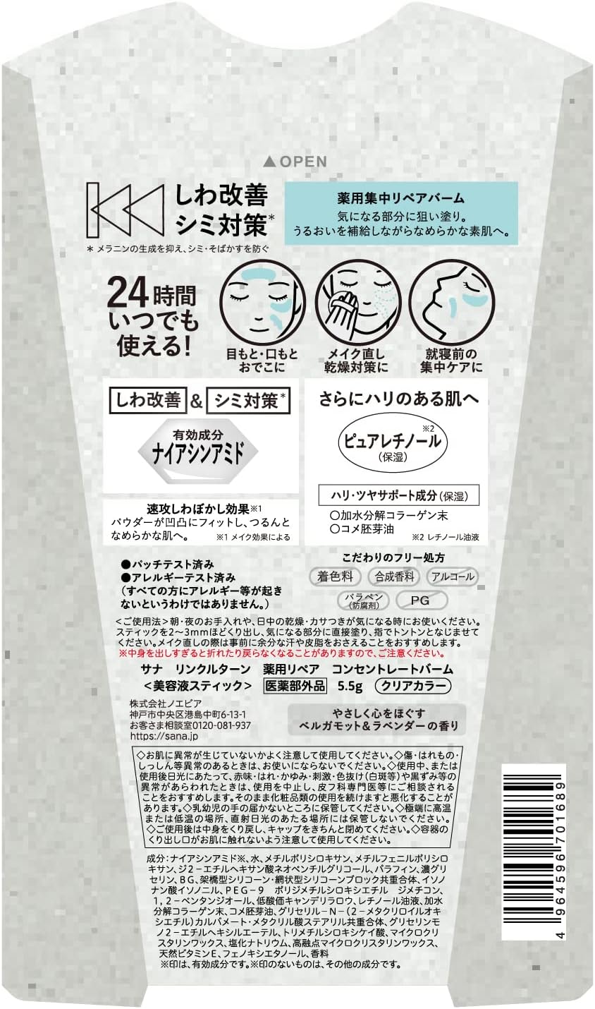 O Sana Wrinkle Turn Repair Concentrate Balm 5.5 foi desenvolvido para oferecer um cuidado profundo e eficaz, melhorando rugas e prevenindo manchas da idade com a ação comprovada da niacinamida¹ e do retinol puro².