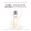 Obtenha uma pele clara e transparente com essência de tratamento facial. Pegue uma pequena quantidade (aproximadamente do tamanho de uma moeda de 100 ienes) nas mãos, junte as palmas e pressione suavemente o rosto para aplicá-la. Mais uma essência
