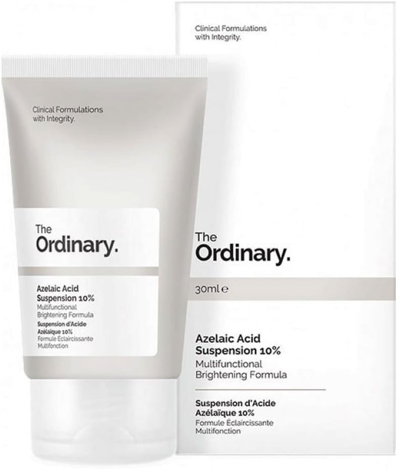 Suspensão de Ácido Azelaico 10% é uma fórmula cremosa que ilumina o tom da pele e melhora visivelmente a textura da pele devido a uma alta concentração de ácido azelaico – um antioxidante natural e eficaz encontrado nos grãos. Tem um potencial de irritação menor do que outros ácidos diretos, o que significa que é suave o suficiente para uso diário como parte do seu regime de cuidados com a pele.