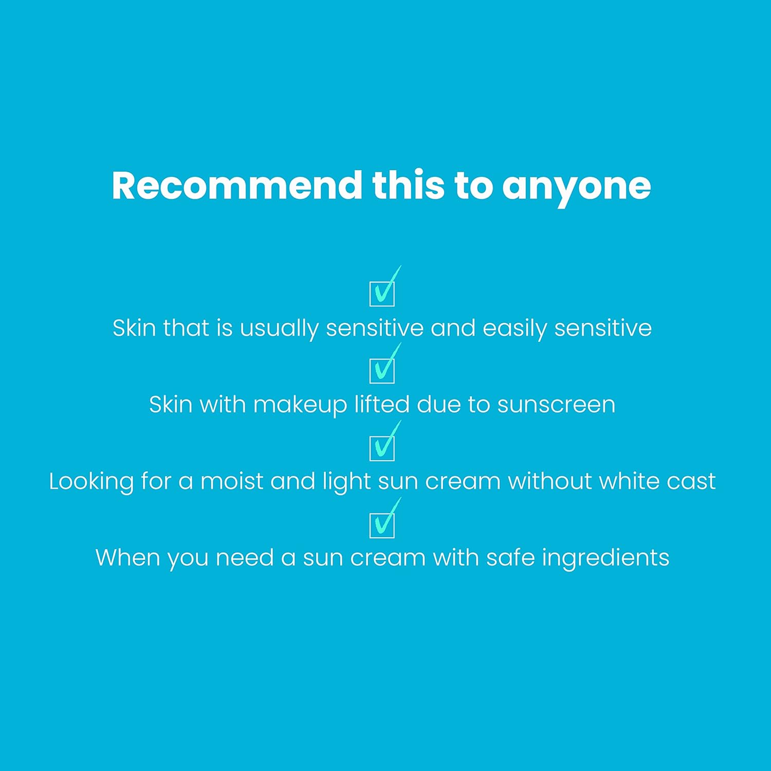 Se você está procurando um protetor solar que absorva a umidade da pele sem esforço, sem deixar manchas brancas , experimente agora mesmo!
