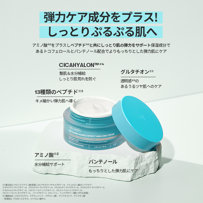 – Contém 13 tipos de ingredientes peptídicos encapsulados em lipossomas, proporcionando hidratação e elasticidade.
