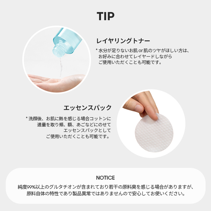 Água purificada, propanodiol, BG, glicerina, niacinamida, 1,2-hexanodiol, DPG, glutationa, trealose, polímero cruzado de poliacrilato-6, (C12-14) Pareth-12, caprililglicol, etilhexilglicerina, adenosina, EDTA -2Na, hidroxiacetofenona, goma xantana, fragrância, extrato de Centella asiática, t-butanol, hialuronato de sódio, lecitina, extrato de pérola, extrato de flor de lótus, acetilhexapeptídeo-8, extrato de própolis, polipeptídeo de ácido ascórbico, asiaticoside, ácido glicirrízico 2K, madecassoside, madecassic ácido, ácido asiático, ceramida NP, arginina, acetiltetrapeptídeo-2, acetiltetrapeptídeo-3, acetiltetrapeptídeo-5, acetiltetrapeptídeo-9, acetil octapeptídeo-3, palmitoil tripéptido-1, palmitoil tripéptido-5, palmitoil pentapeptídeo-4, nonapeptídeo-1, carnosina, tripeptídeo-1 cobre