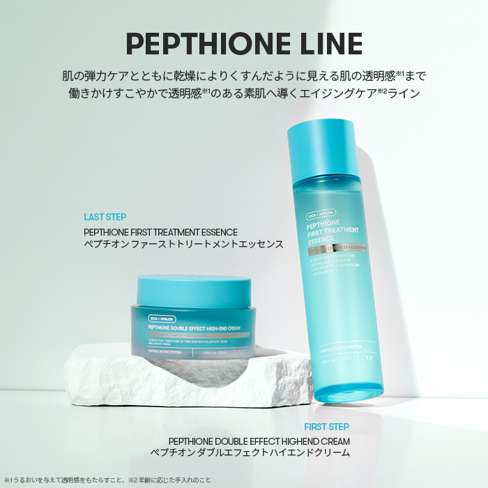 Série Peption VT: Uma linha de cuidados anti-envelhecimento que promove uma pele saudável e transparente. O ingrediente exclusivo da VT, CICAHYALON®, prepara a pele para as mudanças e oferece cuidados para elasticidade e transparência!